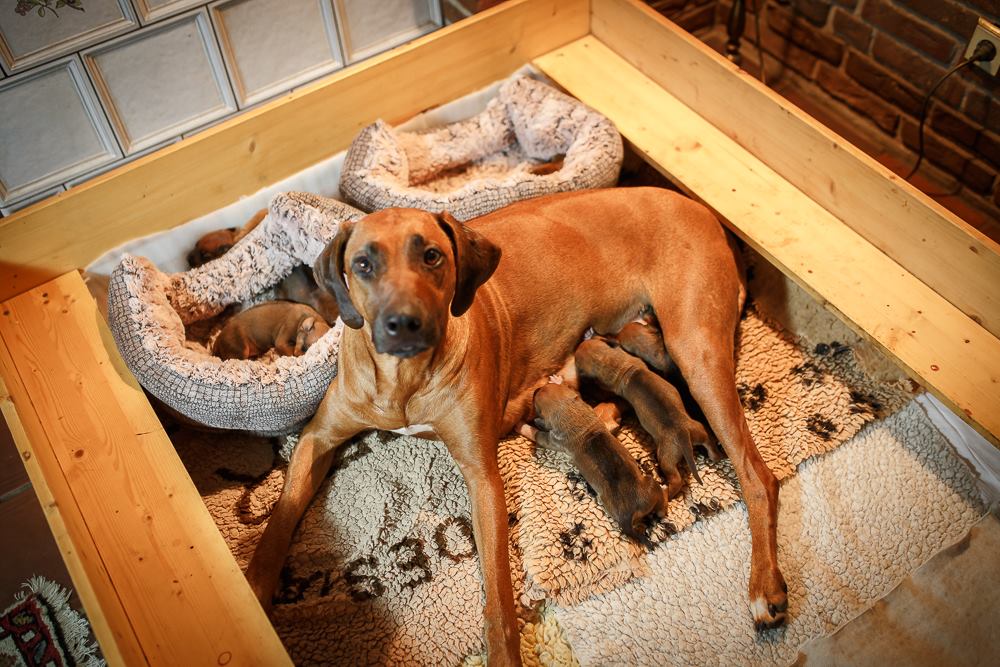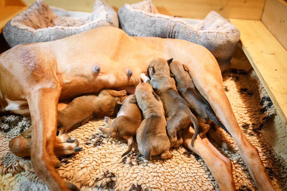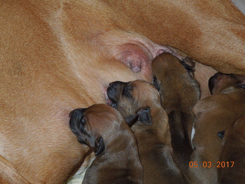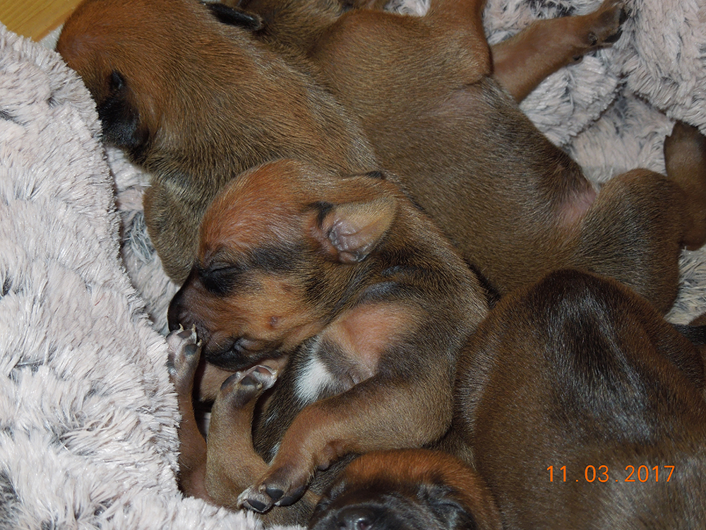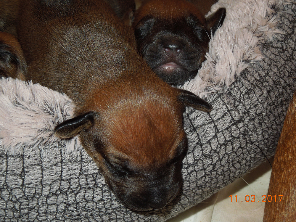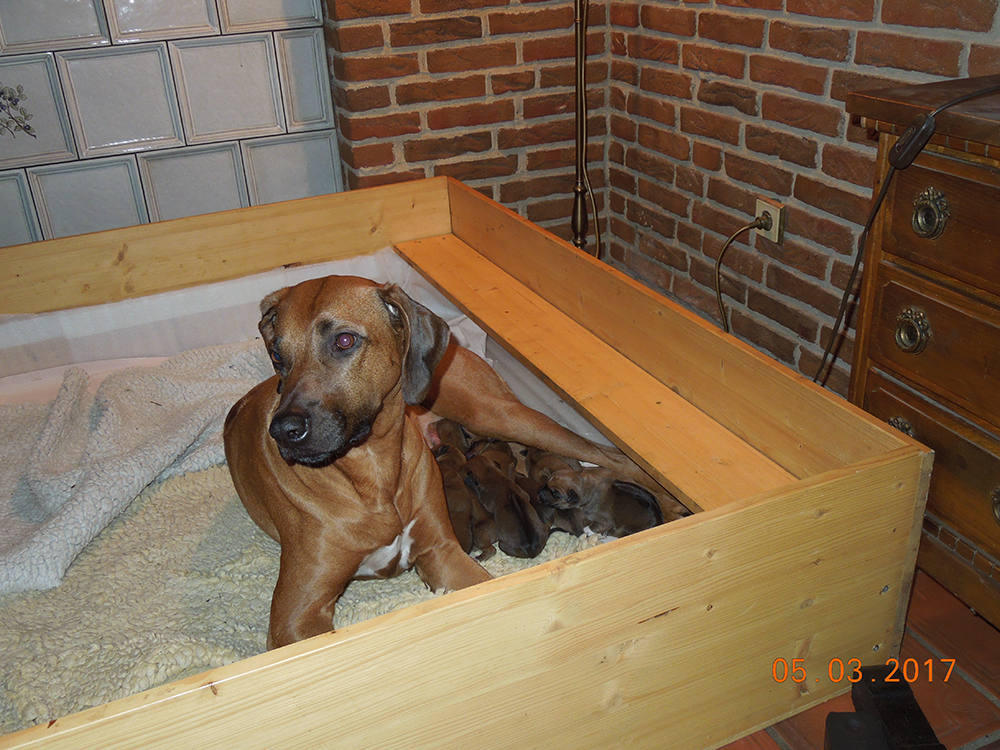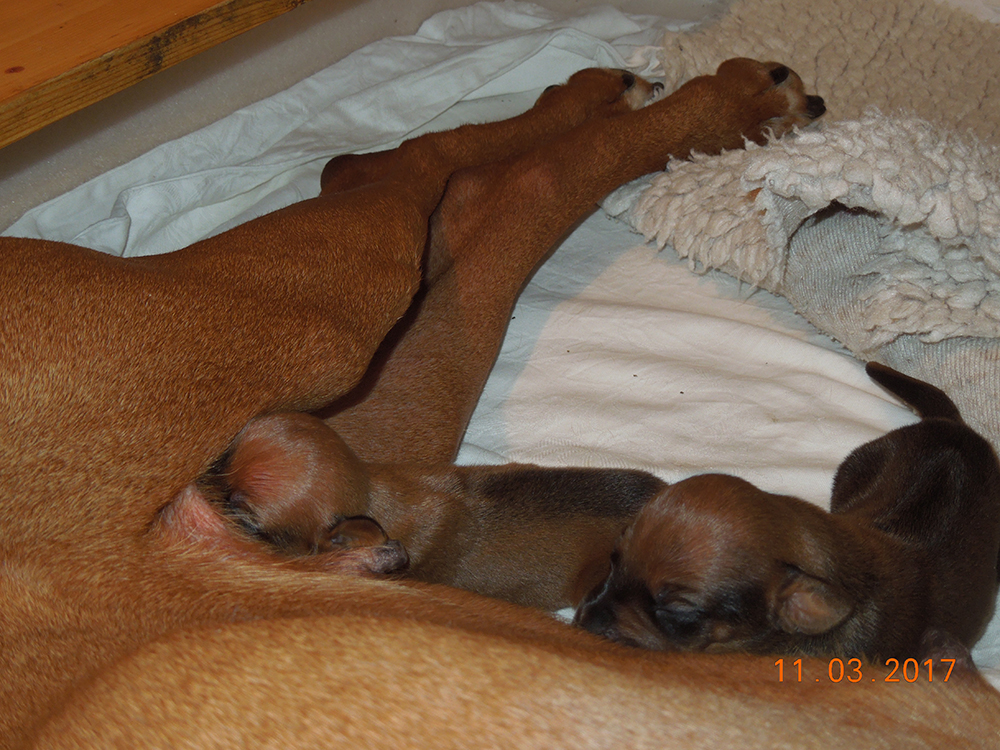 Am 05.03.2017 pünktlich 0.00 Uhr (es sollten gern Sonntagskinder werden) kamen die 4 jungen Damen und 4 Herren des "G-Wurfes" ans Licht dieser Welt und begleiteten subito warm und trocken verpackt ihre Mama auf dem Weg in die Klinik, um dort feststellen zu lassen, dass das Rudel mit ihnen komplett sei."
