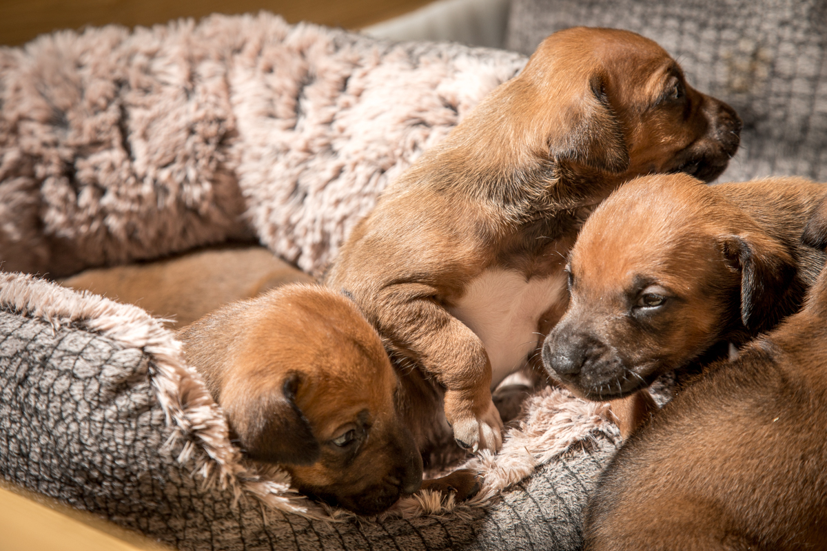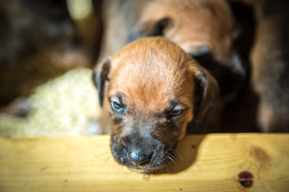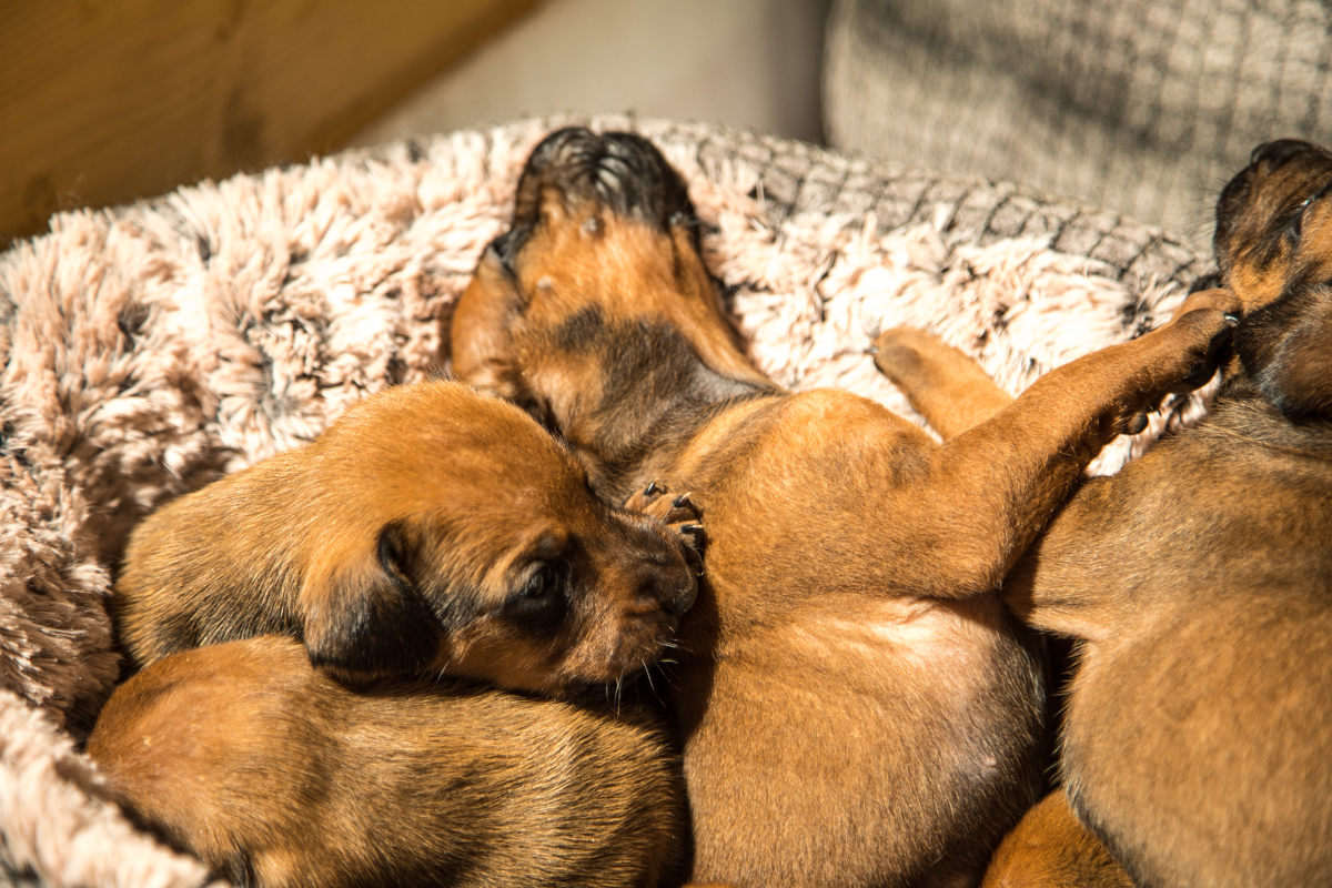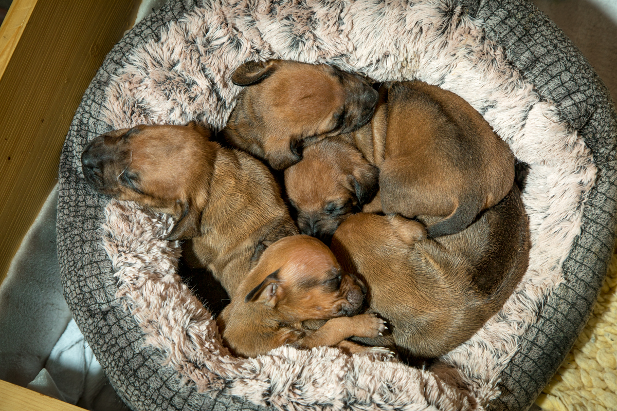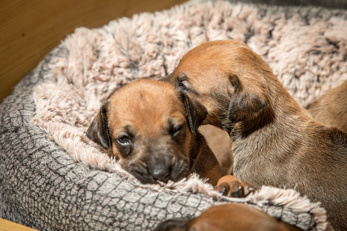 Nachdem unsere liebe Hunde-Paparazzi-Fotografin Danny , sich von einem schweren grippalen Infekt einigermassen erholt hat, hat sie einmal mehr zauberhafte Bilder der kleinen Rasselbande gefertigt, die nun mit weit und interessiert geöffeneten Äuglein und Öhrchen fröhlich durch die Wurfkiste torkeln, sich gegenseitig die zahnlosen Kiefer ins Fell schlagen, und sich schon heftig mit Ausbruchsplänen beschäftigen.  Ich denke, wir müssen alsbald umziehen, damit es kein Malheur gibt, wenn sie der Kiste den Rücken kehren.
