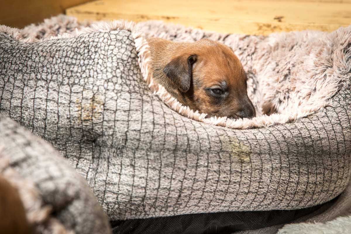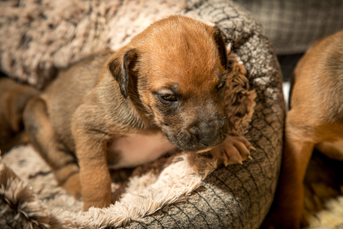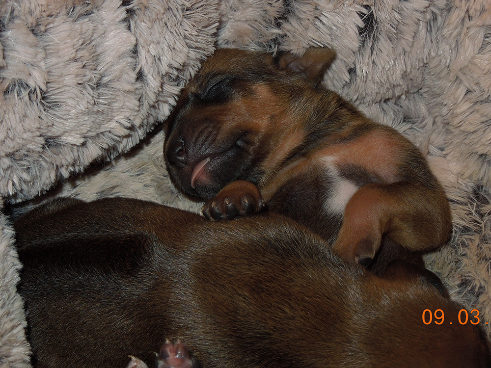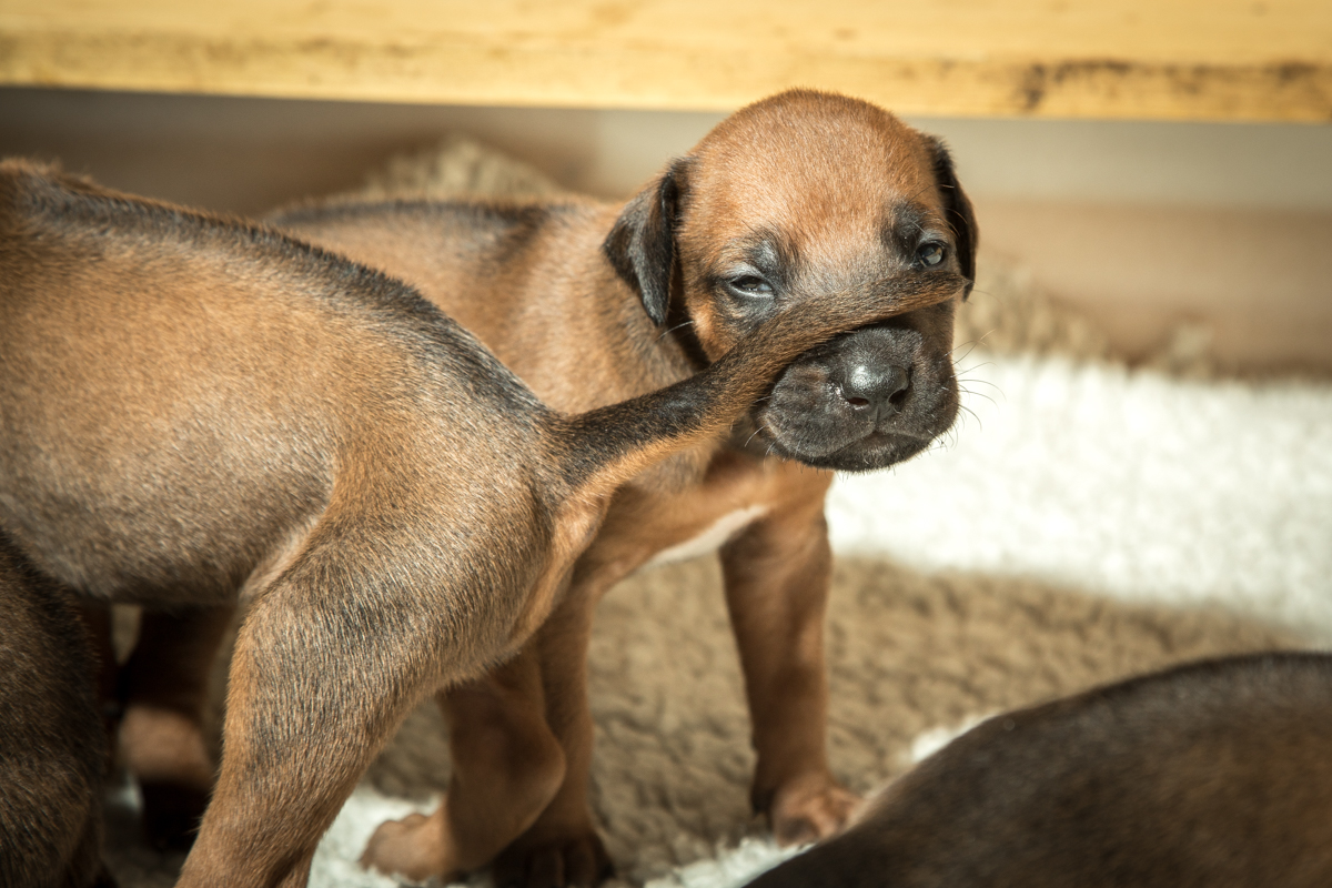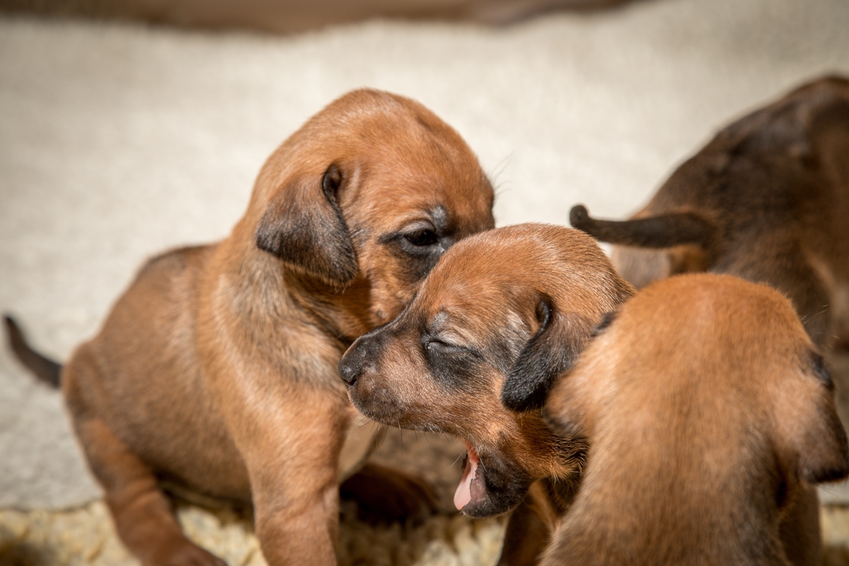 Nachdem unsere liebe Hunde-Paparazzi-Fotografin Danny , sich von einem schweren grippalen Infekt einigermassen erholt hat, hat sie einmal mehr zauberhafte Bilder der kleinen Rasselbande gefertigt, die nun mit weit und interessiert geöffeneten Äuglein und Öhrchen fröhlich durch die Wurfkiste torkeln, sich gegenseitig die zahnlosen Kiefer ins Fell schlagen, und sich schon heftig mit Ausbruchsplänen beschäftigen.  Ich denke, wir müssen alsbald umziehen, damit es kein Malheur gibt, wenn sie der Kiste den Rücken kehren.